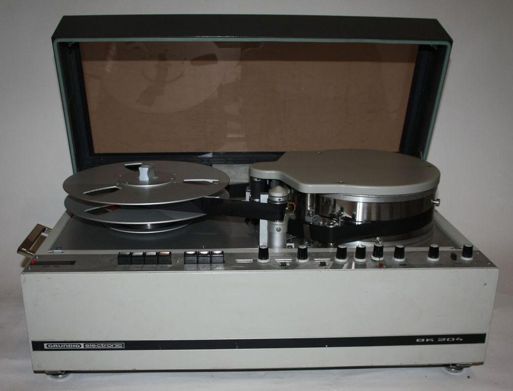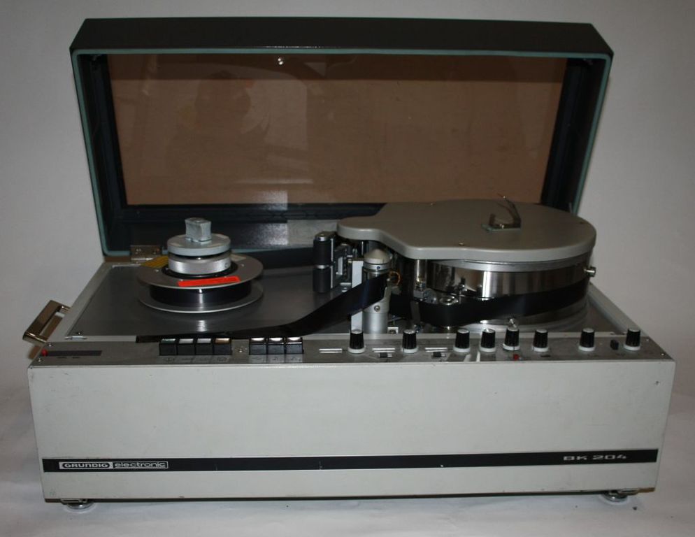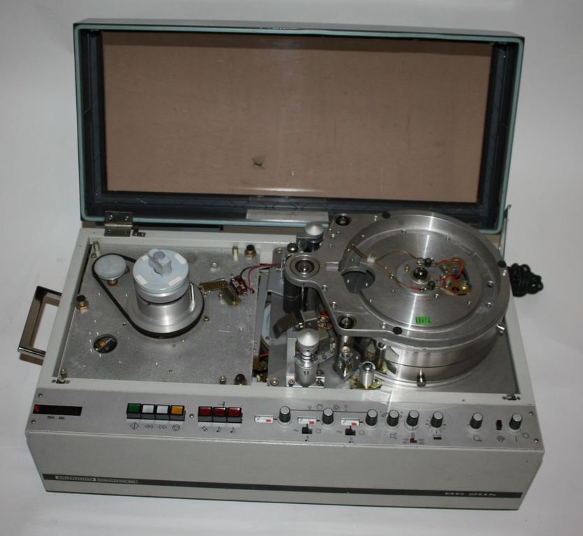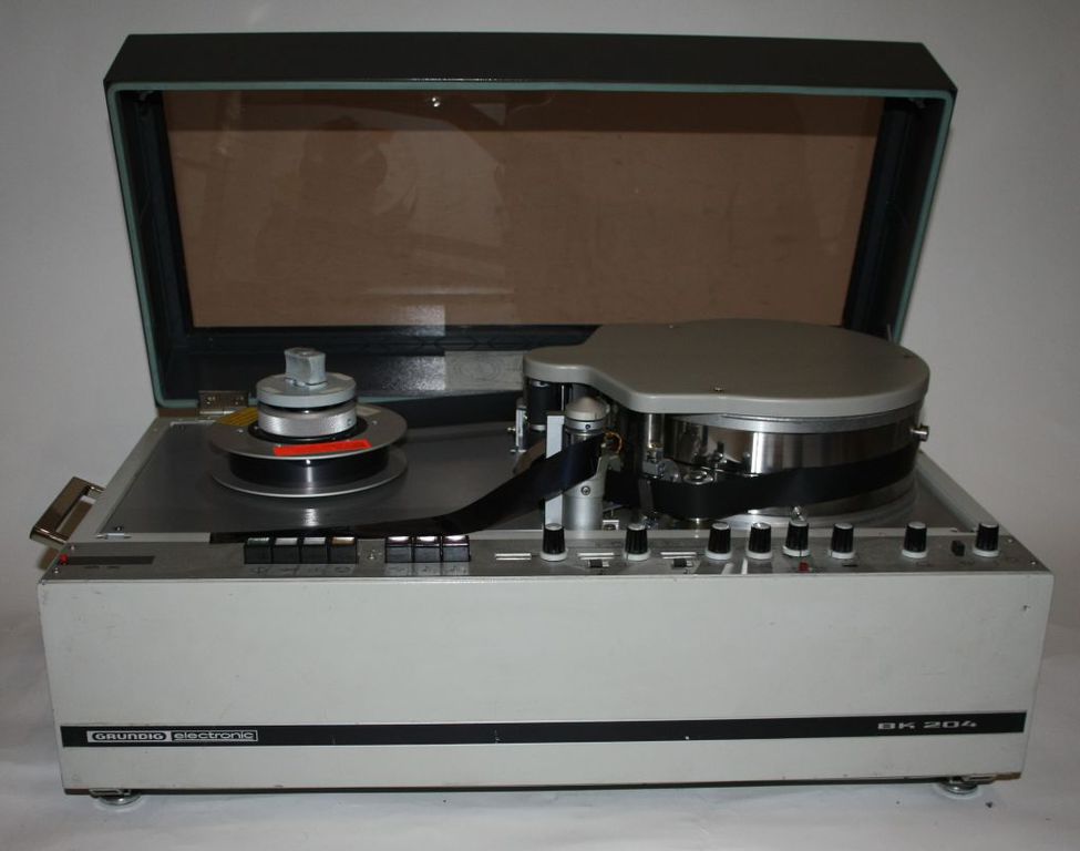 Bei diesem Videosystem liegen die Bandspulen übereinander. Erstes Modell der BK20x Reihe war die BK200. Zu der BK204 habe ich leider keine Informationen. Die Bk20o kam 1968 auf den Markt und hat damals ohne Farbkarten 15000DM gekostet. Die hier abgebildete BK204 wurde als schwarz weiss Gerät ausgeliefert und erst in den 90-er Jahren des letzten Jahrhunderts mit originalen Farbkarten nachgerüstet.
